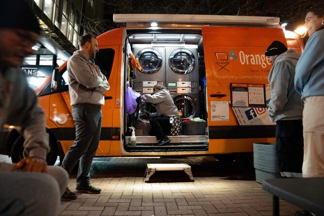 “I hadn’t had a shower in four days,” he recalls. “As soon as I saw the Orange Sky van, I dived in. Having clean clothes and a shower — man, it changes everything.”